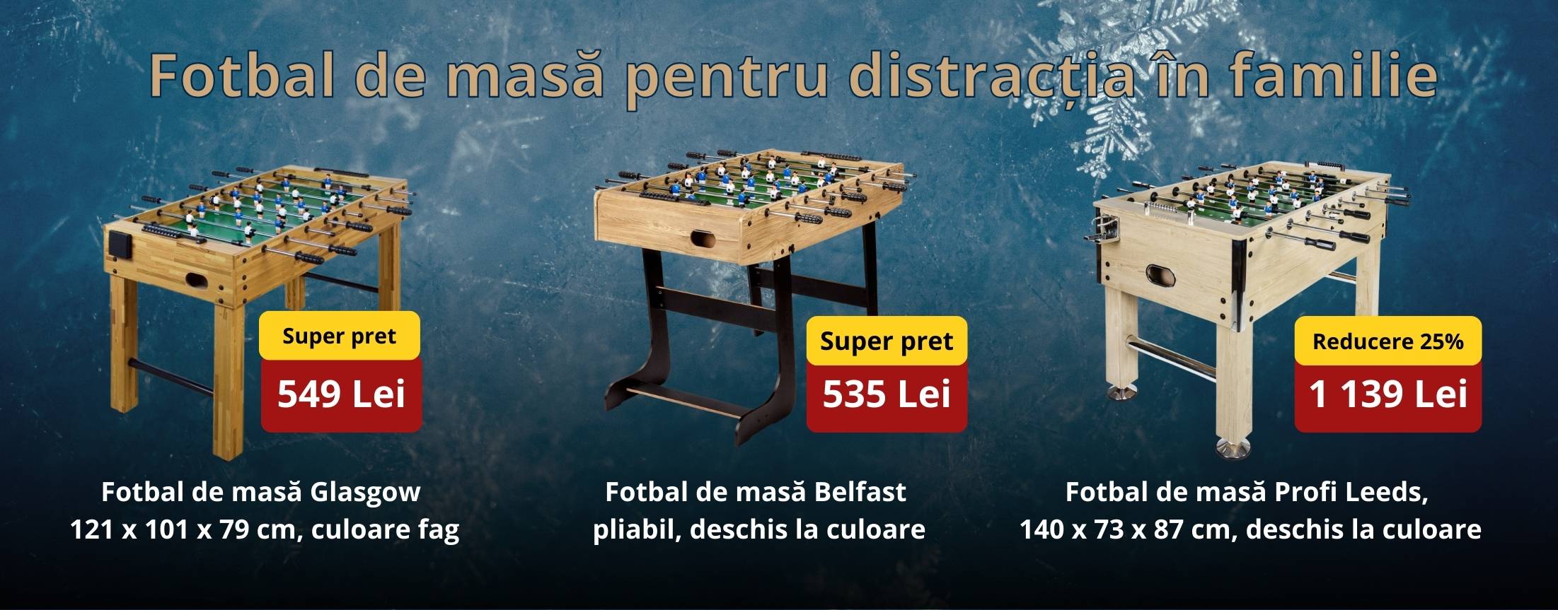 Scopul nostru este mai presus de toate un client mulțumit, indiferent de cerințele sale. Pentru iubitorii de distracție și agrement original, am pregătit mese de biliard și fotbal de masă, care sunt concepute nu numai pentru adulți, ci și pentru copii. Fanilor grădinăritului le place să cumpere sere de la noi, inclusiv toate accesoriile.
