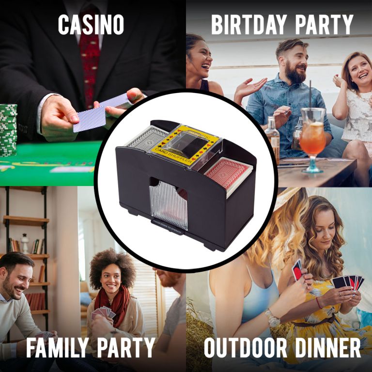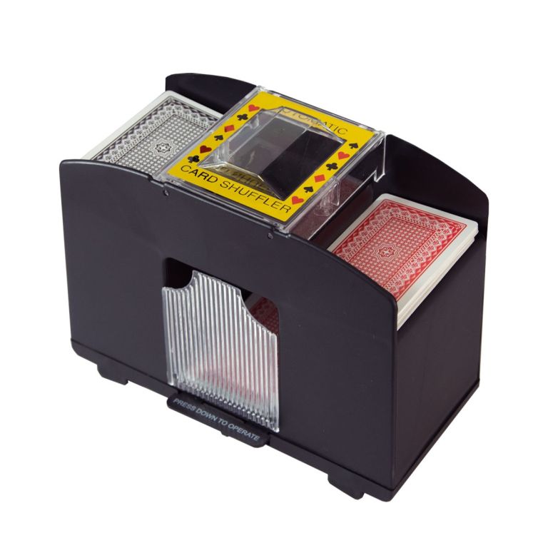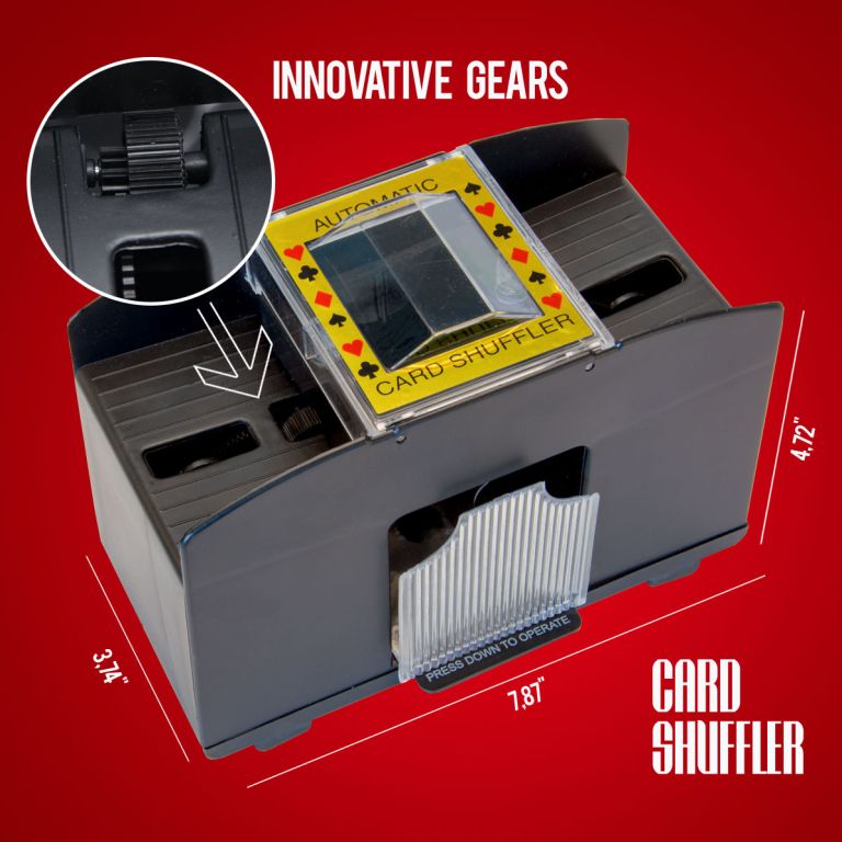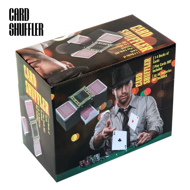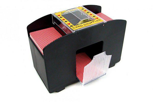 Trucul: Mașina automată de amestecat cărțile poate amesteca patru pachete de cărți deodată - și în mai puțin de trei secunde. Fie că jucați jokeri, blackjack sau poker - veți economisi mult timp și efort!