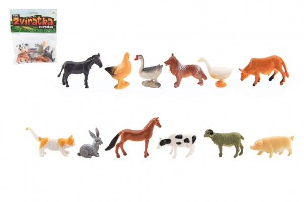 Animale mini casă fermă plastic 12 buc într-o pungă