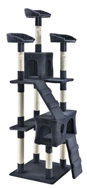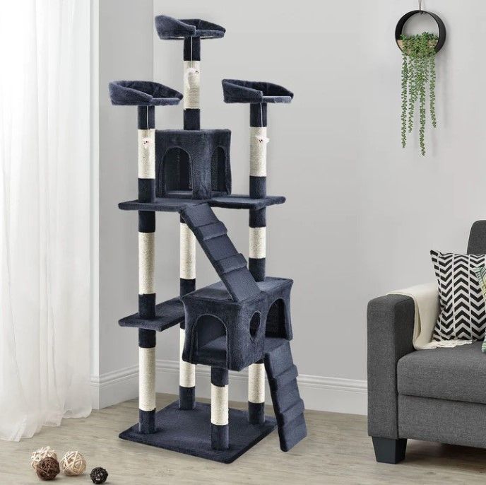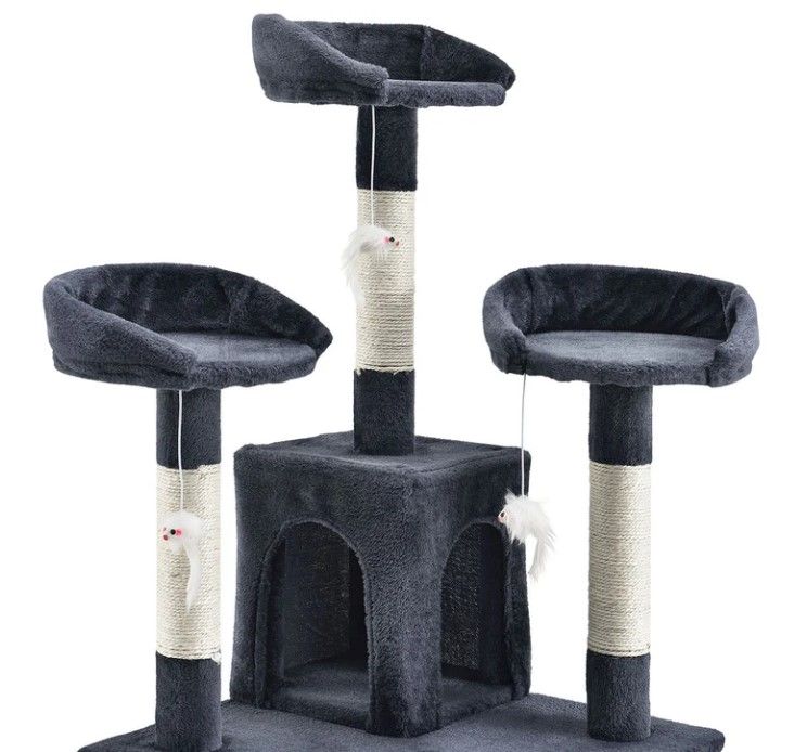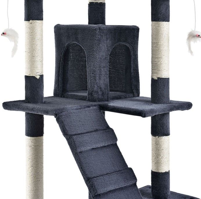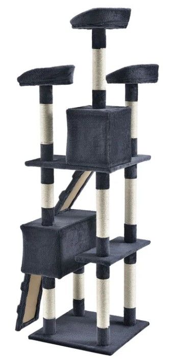 Răsfață-ți pisica cu un spațiu creat special pentru nevoile ei! Două căsuțe moi și platforme la înălțime îi oferă locuri perfecte pentru odihnă și supraveghere. Jucăriile tip șoricel aduc distracție și mișcare zilnică.