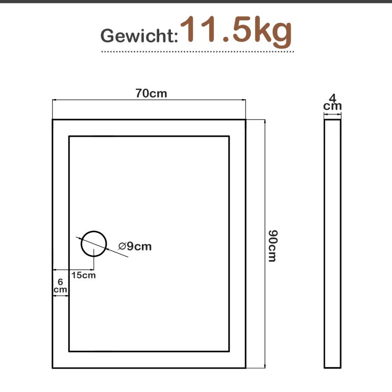 Aquamarin cuvă de duș pătrată, 90 x 70 cm