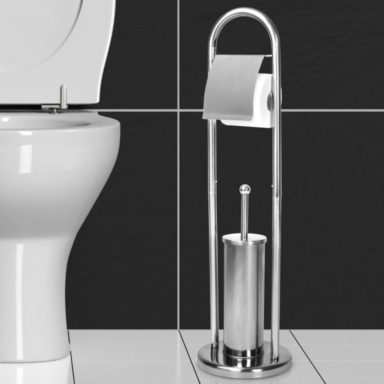 Combinația practică dintre un suport pentru hârtie igienică și o perie de toaletă este potrivită pentru fiecare baie.
