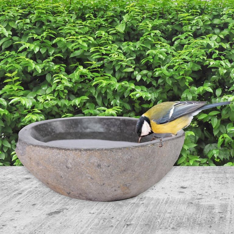 Baie pentru păsări din piatră naturală, 23,5 cm, gri, rezist