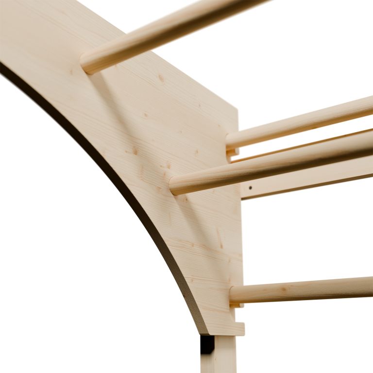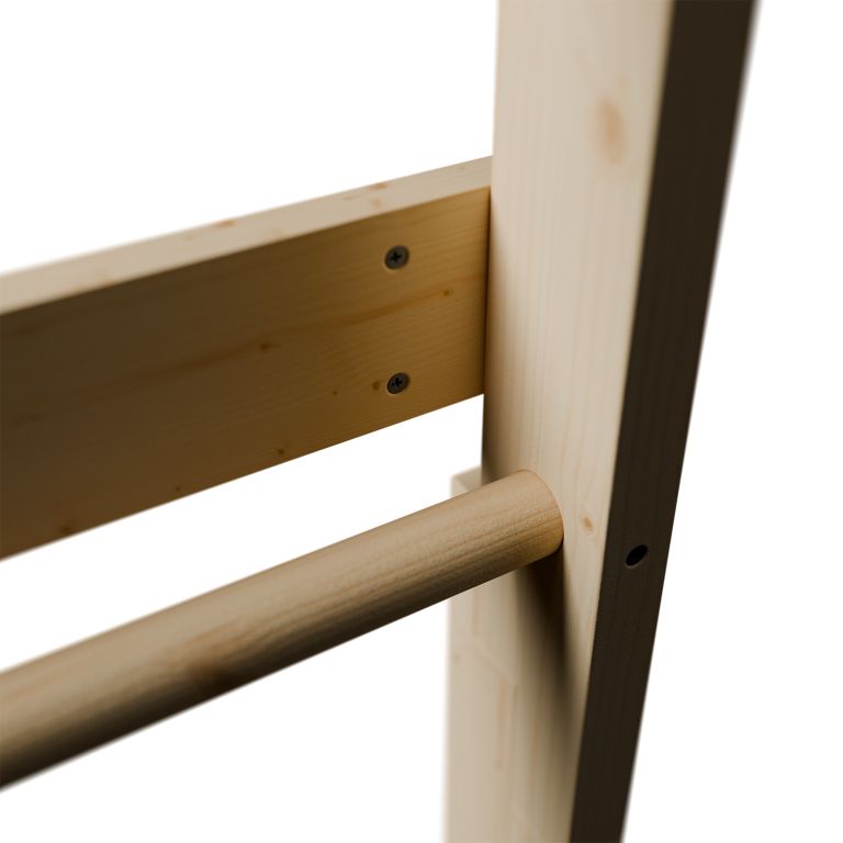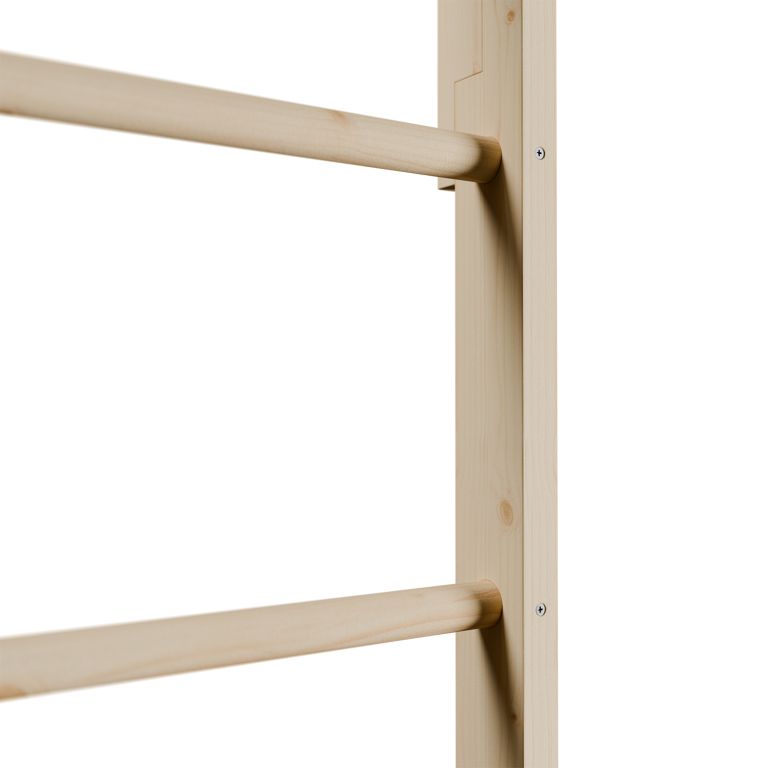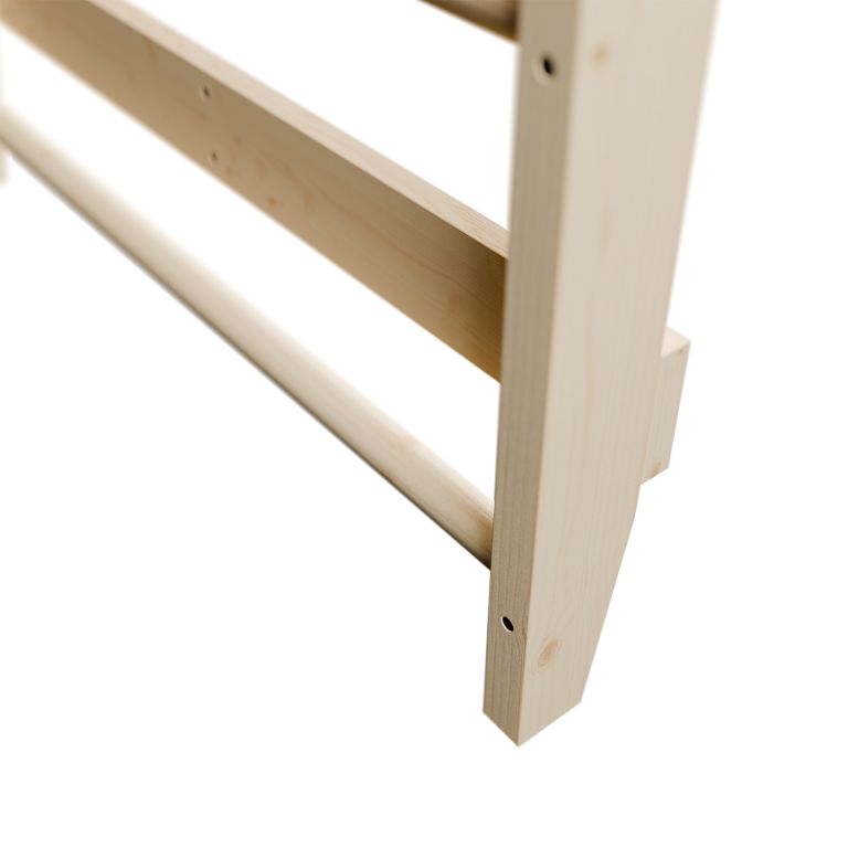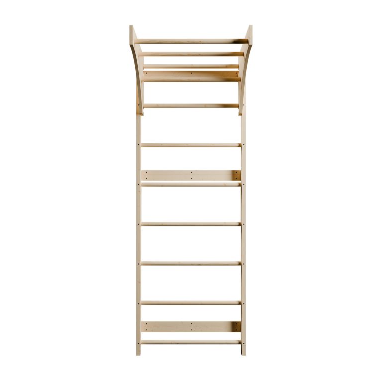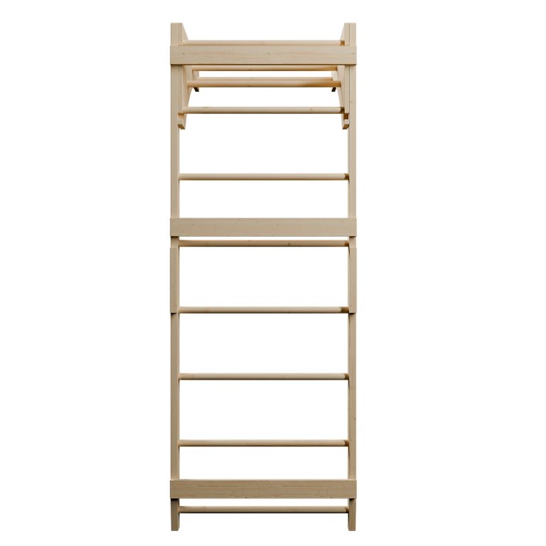 Scările sunt realizate din lemn de fag rezistent și, cu o capacitate de până la 170 kg, pot fi folosite în siguranță și de adulți. Bara superioară extinde antrenamentul prin tracțiuni și exerciții suspendate, astfel că puteți echipa întreaga sală de fitness de acasă cu un singur element compact. Fixarea pe perete este simplă, oferind un echipament sportiv stabil și durabil pentru întreaga familie.