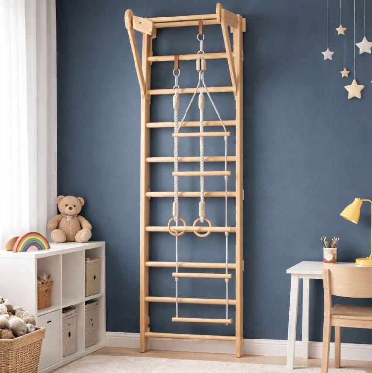 Căutați o modalitate de a vă motiva copiii să facă mișcare și, în același timp, să adăugați un element sportiv practic în casă? Scările din lemn cu bară orizontală, înalte de 220 cm, reprezintă soluția ideală pentru camera copiilor, adolescenților sau pentru sala de fitness de acasă. Ele oferă multiple posibilități de utilizare – de la întinderi și exerciții de bază, până la activități distractive care dezvoltă natural forța și coordonarea motrică a copiilor.