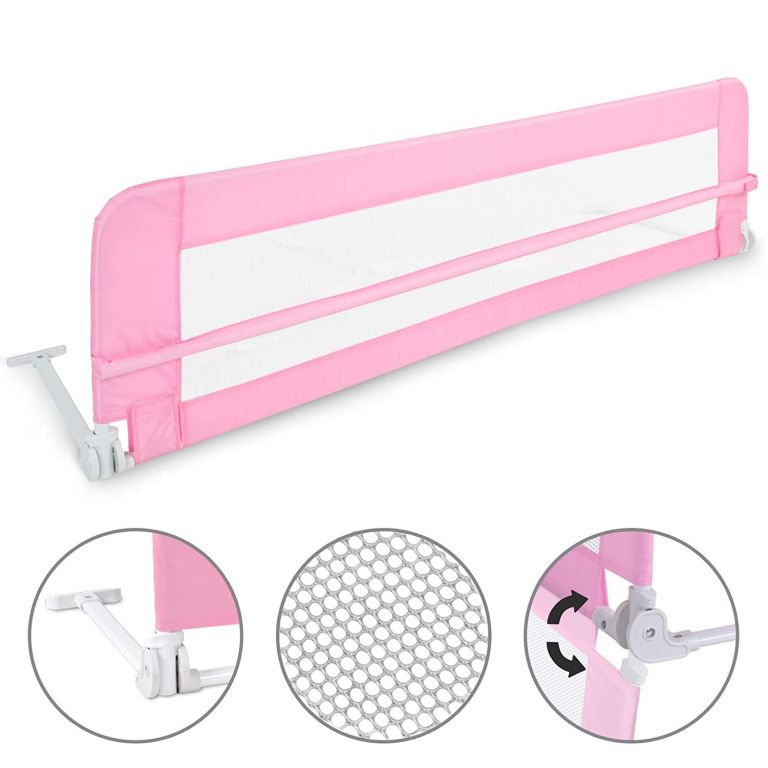 Barieră de protecție pat pentru copii, 150 cm, roz