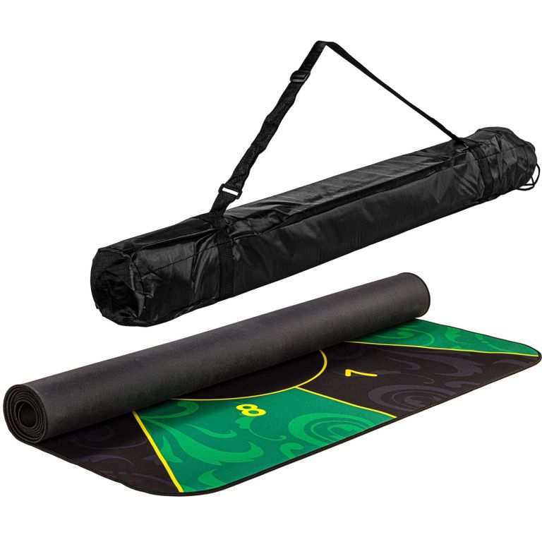 Covorașul de poker este adecvat pentru până la 10 jucători. Partea din față este fabricată din poliamidă impermeabilă, iar materialul este, de asemenea, plăcut de moale și neted la atingere (similar cu un covoraș pentru mouse). Partea din spate este fabricată din cauciuc natural antiderapant - învelișul de cauciuc împiedică alunecarea covorasului. Covorasul poate fi rulat pentru a economisi spațiu și poate fi luat cu ușurință oriunde cu ajutorul genții de transport incluse.