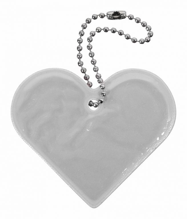 Breloc reflectorizant inimă, ușor de prins, crește siguranța pe timp de noapte.