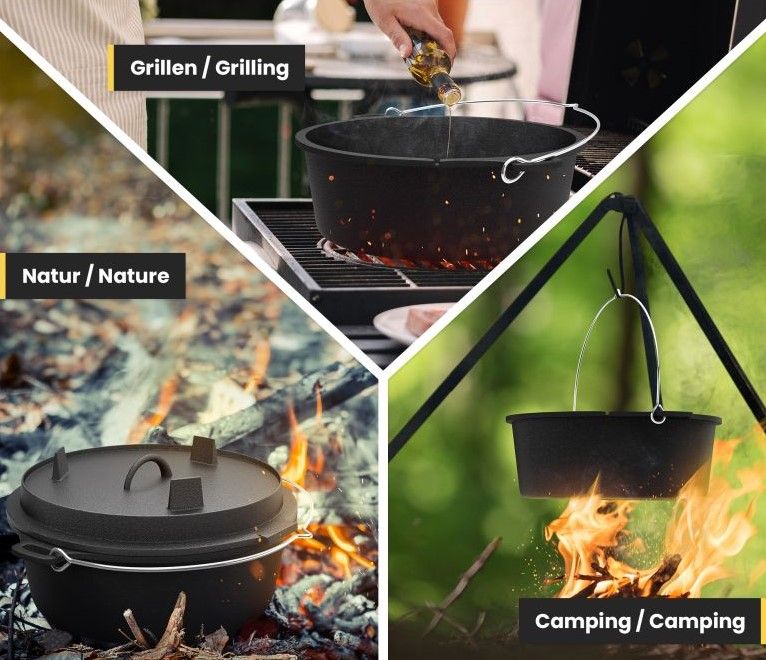 Descoperiți versatilitatea maximă în gătit cu cuptorul nostru olandez, fabricat din fontă pre-condimentată și rezistent la căldură până la 400 °C.
