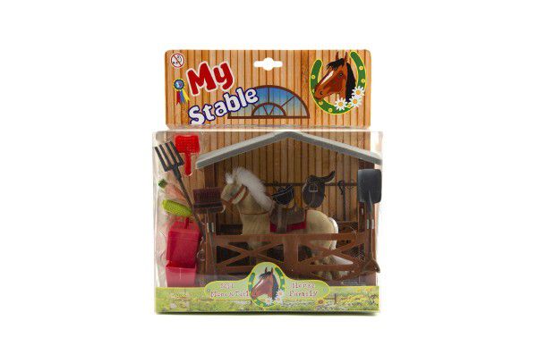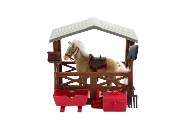 Vedeți descrierea mai detaliatăCal cu grajduri si accesorii din plastic in cutie 23x27x9cm