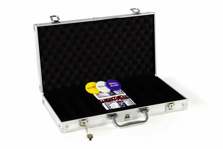 Carcasa robustă din aluminiu cu două încuietori este ideală pentru până la 1000 de jetoane de poker. Este necesar să cumpărați jetoane pe care le puteți alege individual, restul echipamentului fiind complet.