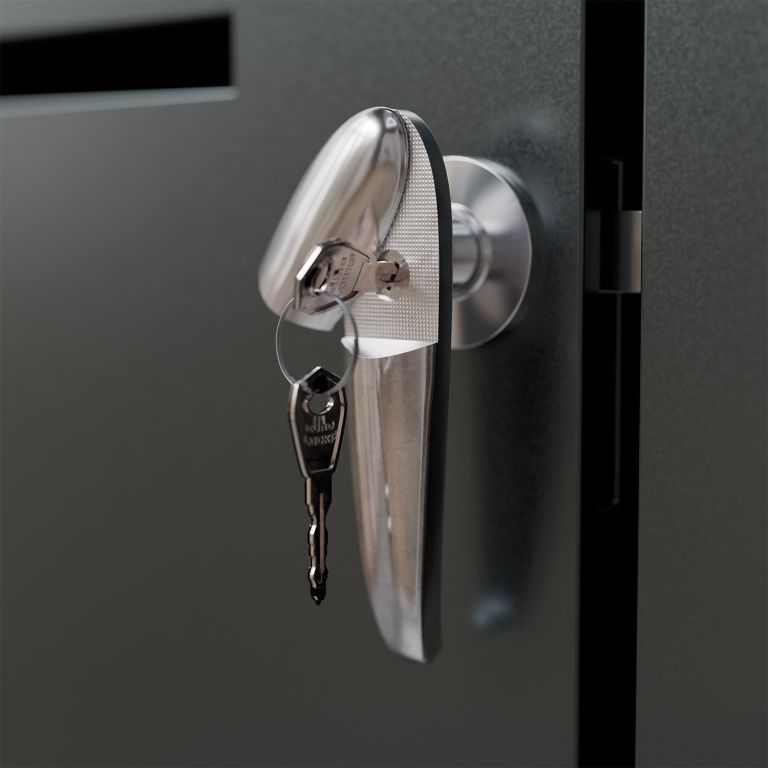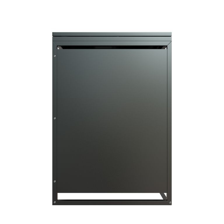 Oțelul galvanizat asigură o durată lungă de viață și rezistență la condițiile meteo. Ușa cu încuietoare și capacul rabatabil facilitează utilizarea zilnică, iar ventilația integrată ajută la prevenirea mirosurilor. Întreținerea este minimă, iar montajul rapid.