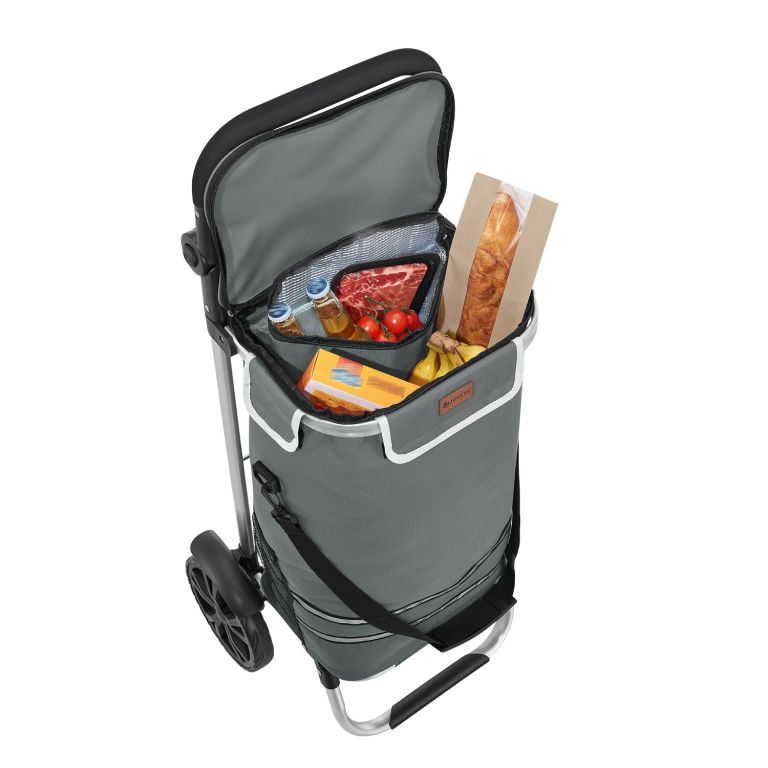 Descoperiți confortul la fiecare cumpărătură cu acest cărucior stilat, gri, cu două roți. Nu mai este nevoie să cărați sacoșe grele – căruciorul vă ușurează drumul de la magazin acasă și vă protejează spatele. Designul elegant și culoarea universală se potrivesc oricărei ținute și vor încânta chiar și cele mai pretențioase cliente.