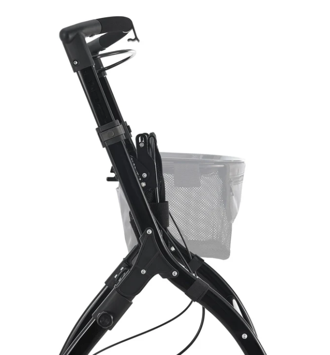Aluminiul rezistent asigură durabilitate, iar mânerele reglabile permit adaptarea la orice utilizator. Mecanismul de pliere și frâna sigură garantează depozitare și utilizare fără griji.