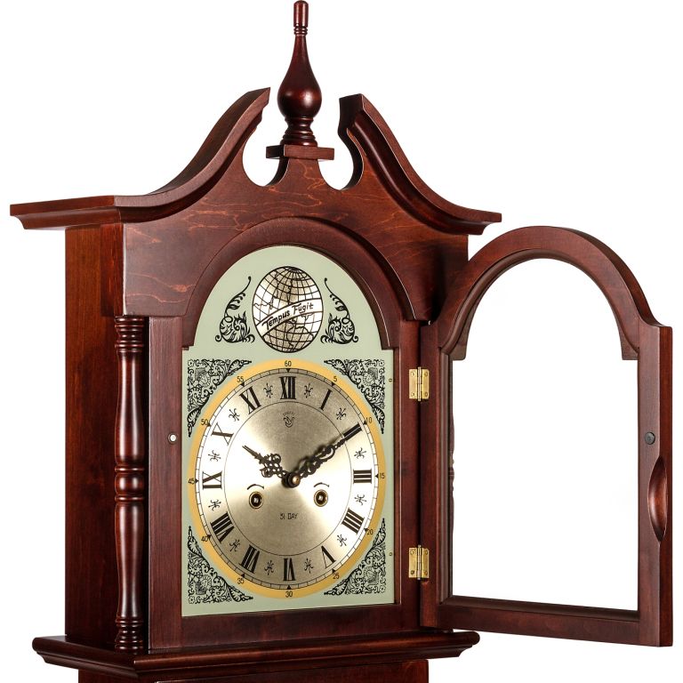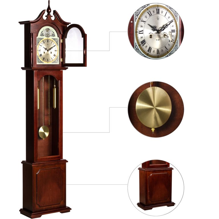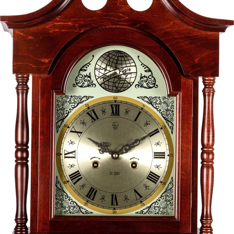 Ceasul cu pendul cu aspect elegant,subliniază perfect interiorul reglat clasic. Mișcarea regulată a pendulului și sunetul plăcut al gongului de o oră vor aduce o atmosferă plăcută în cameră. Ceasul bate o jumătate de oră cu o singură lovitură și apoi pentru o oră întreagă, în funcție de timp, de până la 12 ori. Este suficient sa trageti ceasul o dată la 31 de zile. Este o replică complet funcțională a unui ceas cu pendul clasic.