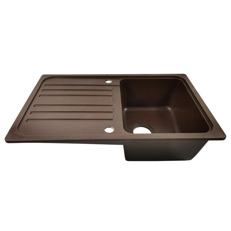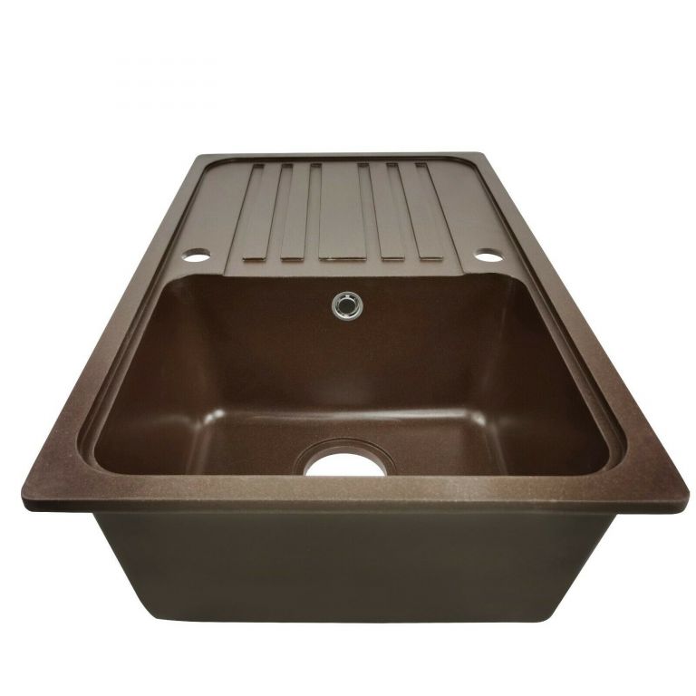 Chiuvetă din granit cu dispozitiv de scurgere, maro, 76 x 46