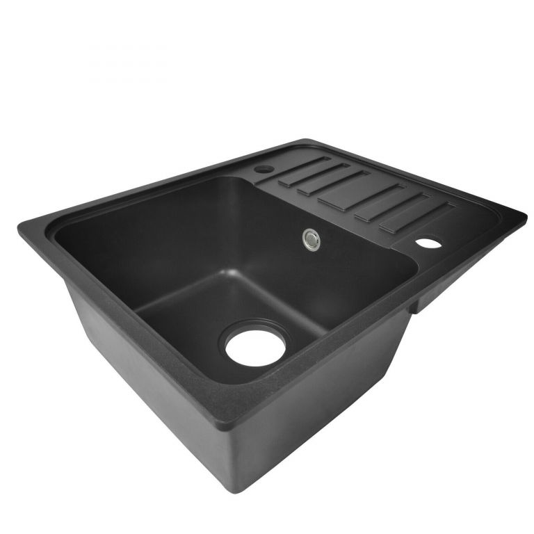 Chiuvetă din granit cu scurgător, negru, 57 x 45 cm