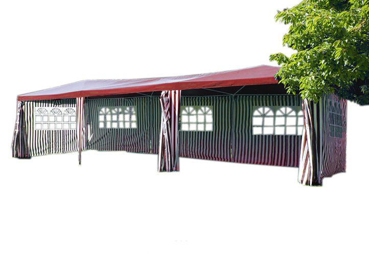 Acest cort care măsoară 3 x 9 metri și cântărește 110 g / m2 este practic, simplu și ușor de montat. Mai ales dacă aveți nevoie de un acoperiș rapid pe drum, acest pavilion face o treabă bună. Nu aveți nevoie de instrumente pentru configurare, iar asamblarea se poate face convenabil folosind un sistem practic de clic.