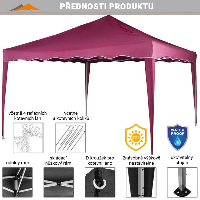 Cort de grădină/petrecere INSTENT - 3x3m,visiniu+4 laturi