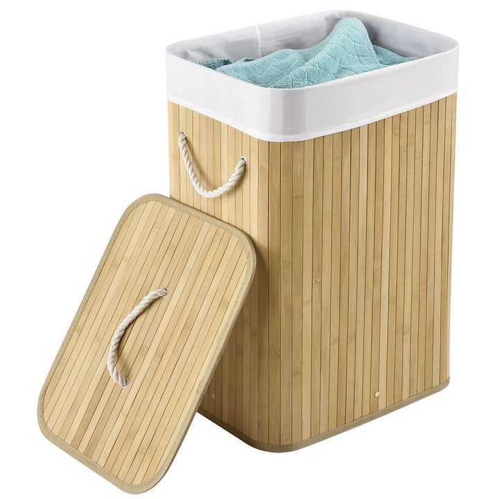 Coș de rufe din bambus 72L cu capac și sac detașabil