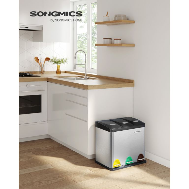 Faceți sortarea deșeurilor mai ușoară și mai elegantă cu acest coș cu trei compartimente. Pedalele colorate și designul modern aduc un plus de stil și funcționalitate în orice spațiu.
