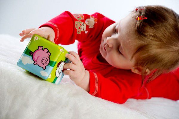 Cubul cu imagini colorate și animale atrage atenția copiilor și dezvoltă imaginația. Dimensiune: 7 x 7 cm. Potrivit de la 0 luni, este fără ftalat și certificat corespunzător.
