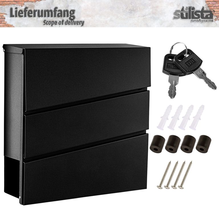 Cutia poștală de perete Stilista, cu un design modern, oferă o mulțime de spațiu de depozitare pentru scrisorile și cărțile poștale. Cutia poștală are o fantă mare pentru scrisori și, prin urmare, este potrivită și pentru scrisori mari și plicuri mai groase. Ele sunt astfel protejate de intemperii. Datorită materialului de asamblare furnizat, puteți asambla cutia poștală rapid și ușor.