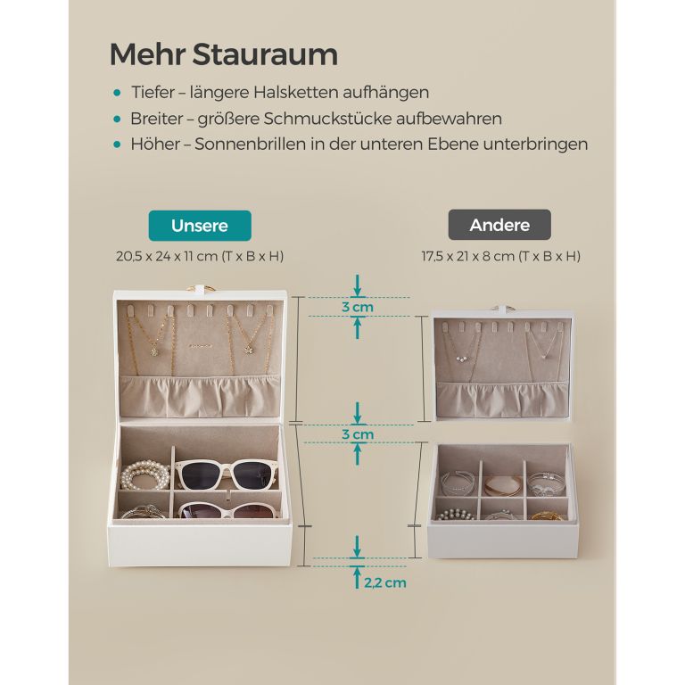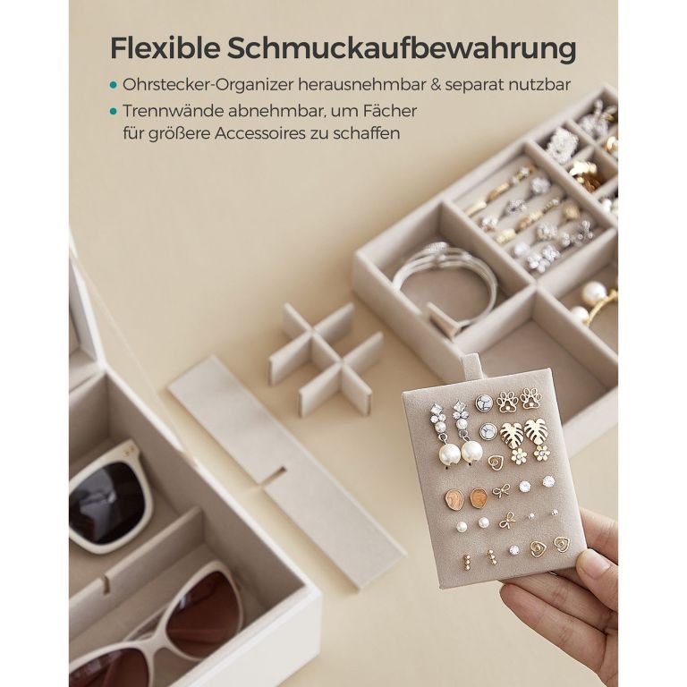 Cutie bijuterii SONGMICS, alb-auriu, 2 niveluri, interior mo