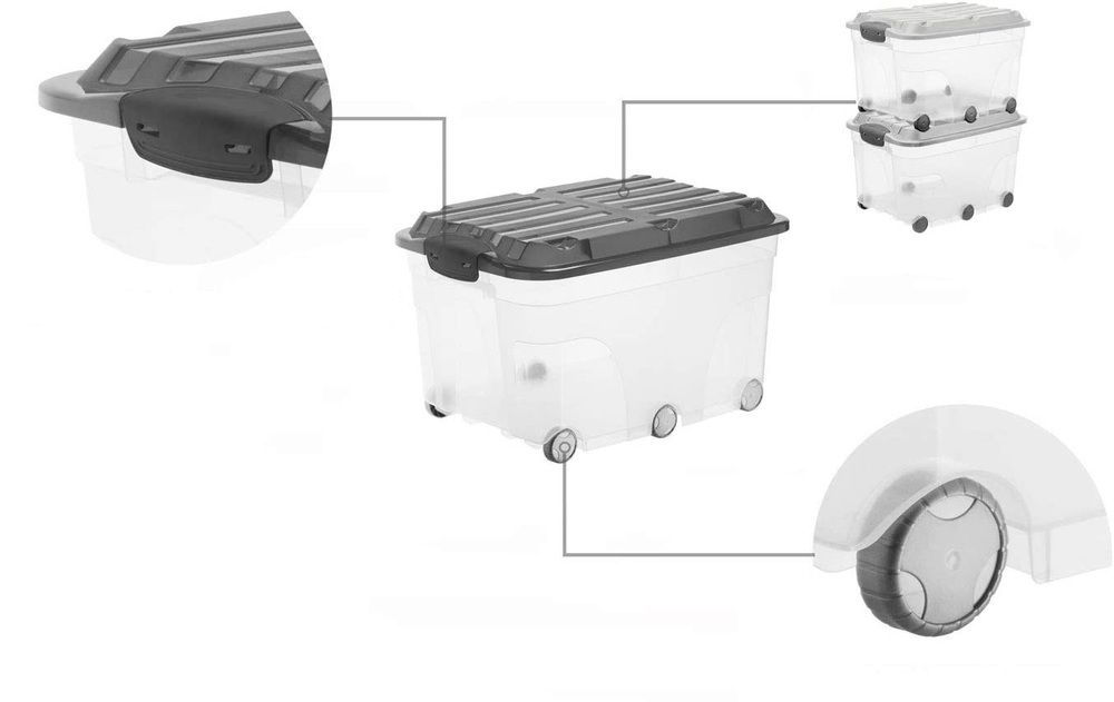 Cutie robustă cu roți și capac sigur, perfectă pentru depozitarea eficientă acasă.