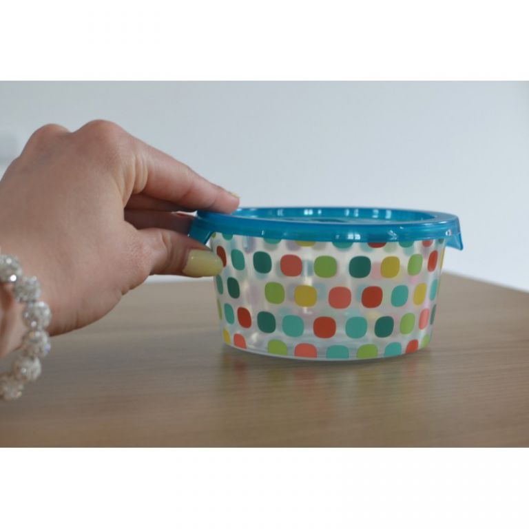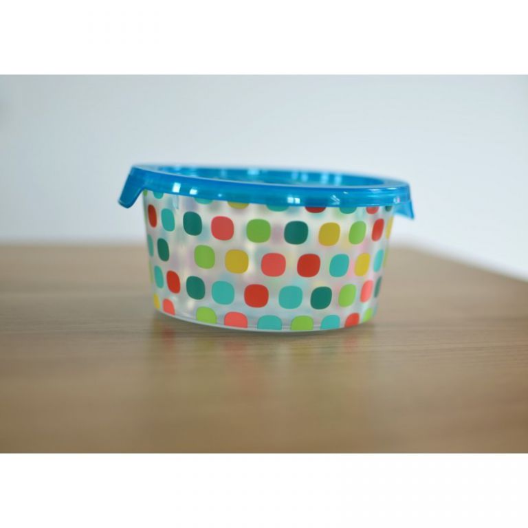 Recipient pentru alimente mai mic, din plastic, rotund, cu capac. Capacul are două mânere pentru o deschidere ușoară. Este folosit pentru depozitarea alimentelor mai mici. Cutiile DECO CHEF pot fi utilizate la cuptorul cu microunde, mașina de spălat vase sau depozitate la frigider. Volum: 0,5L