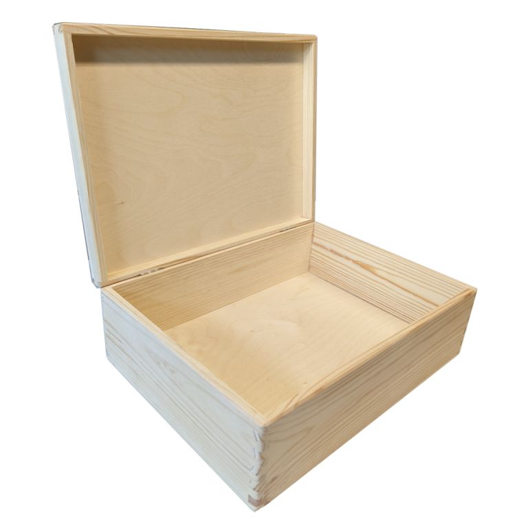 Cutia din lemn este realizată din lemn masiv de pin, este nefinisată și poate fi vopsită cu orice produs conceput pentru lemn sau poate fi lăsată în stare naturală, nevopsită. Cutia este utilă pentru depozitarea suvenirurilor, fotografiilor, documentelor sau hârtiilor.