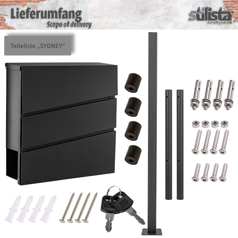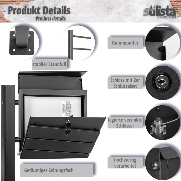 Cutia poștală de perete Stilista, cu un design modern, oferă o mulțime de spațiu de depozitare pentru scrisorile și cărțile poștale. Cutia poștală are o fantă mare pentru scrisori și, prin urmare, este potrivită și pentru scrisori mari și plicuri mai groase. Ele sunt astfel protejate de intemperii. Datorită materialului de asamblare furnizat, puteți asambla cutia poștală rapid și ușor. Datorită piciorului, puteți plasa cutia poștală separat și nu aveți nevoie de un perete pentru montare.