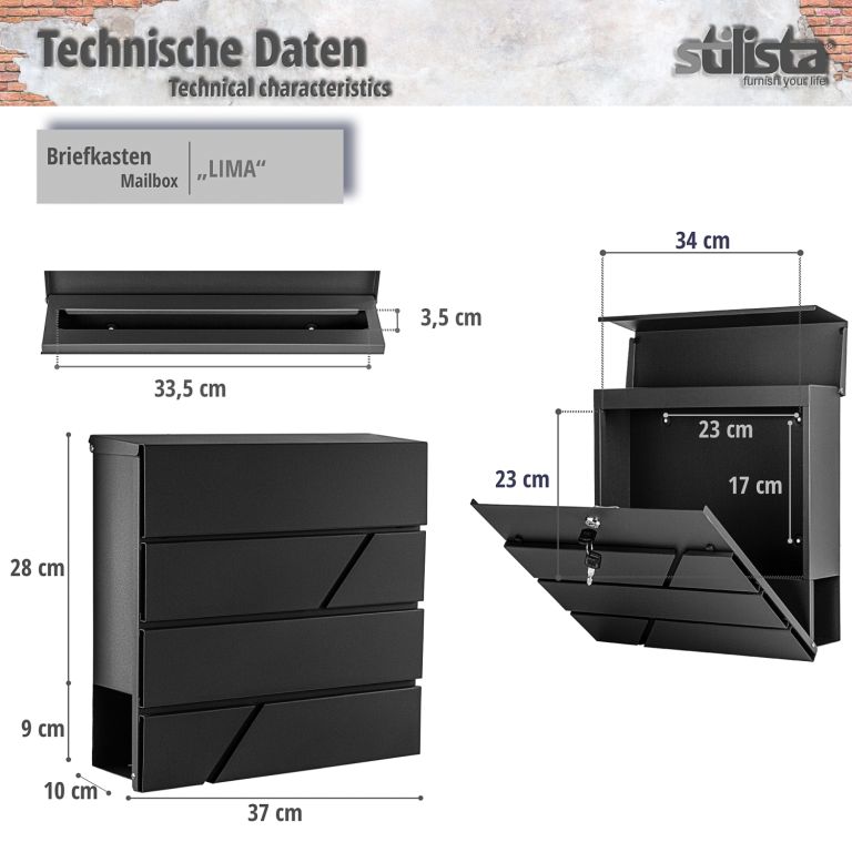 Cutie poștală Lima, 37 x 37 x 10 cm, neagră