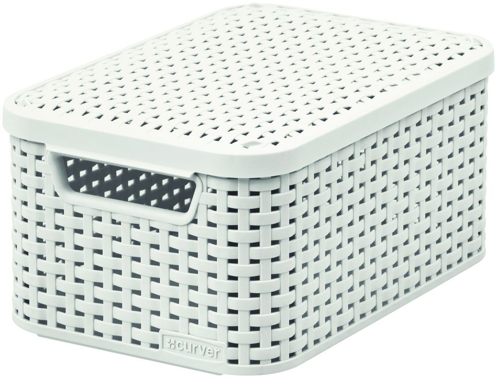 Cutie din plastic cu capac din seria modernă STYLE (imitație de ratan). Boxz din seria „STYLE" este o soluție elegantă pentru amenajarea obiectelor mici în casa ta. Aspectele moderne și elegante se vor potrivi perfect în băi, dressinguri, dormitoare sau camere de zi. Reprezintă o alternativă perfectă la coșurile de răchită și ratan (în comparație cu răchita, plasticul este permanent). Calitatea și designul mărcii CURVER.