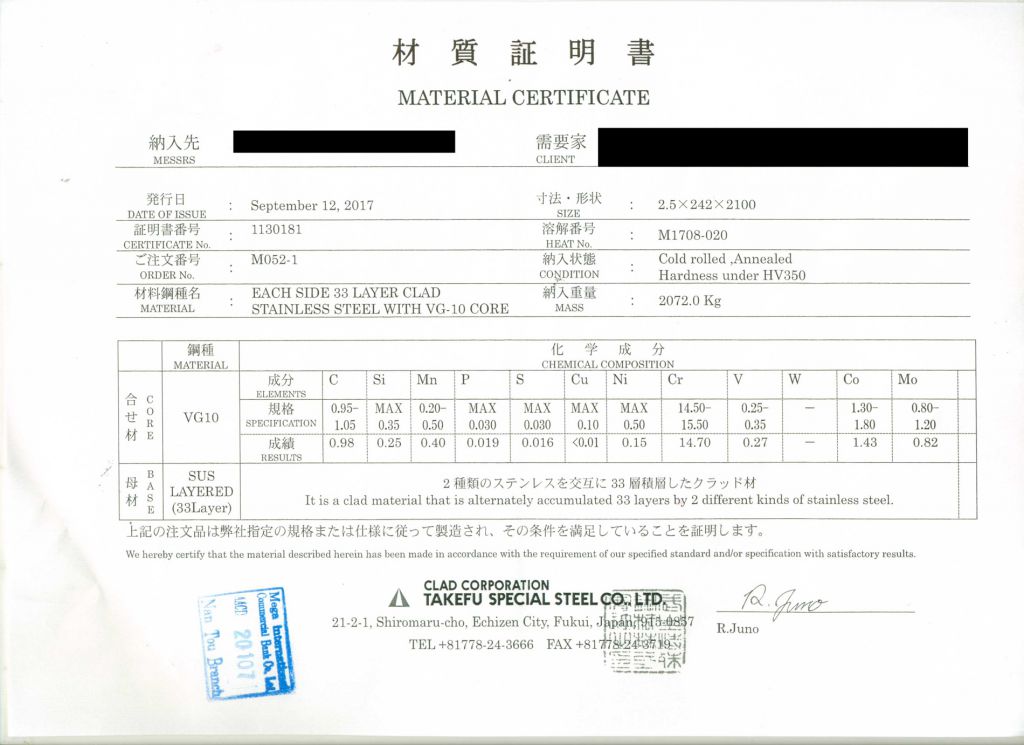 Cuțitele de bucătărie G21 cu lamă de oțel damasc sunt fabricate folosind tehnologia metalurgiei pulberilor, unde straturile sunt aplicate pe metalul de bază (în acest caz oțelul VG-10), care sunt sinterizate treptat împreună. Compoziția diferită a acestor straturi îi face să se întoarcă diferit.