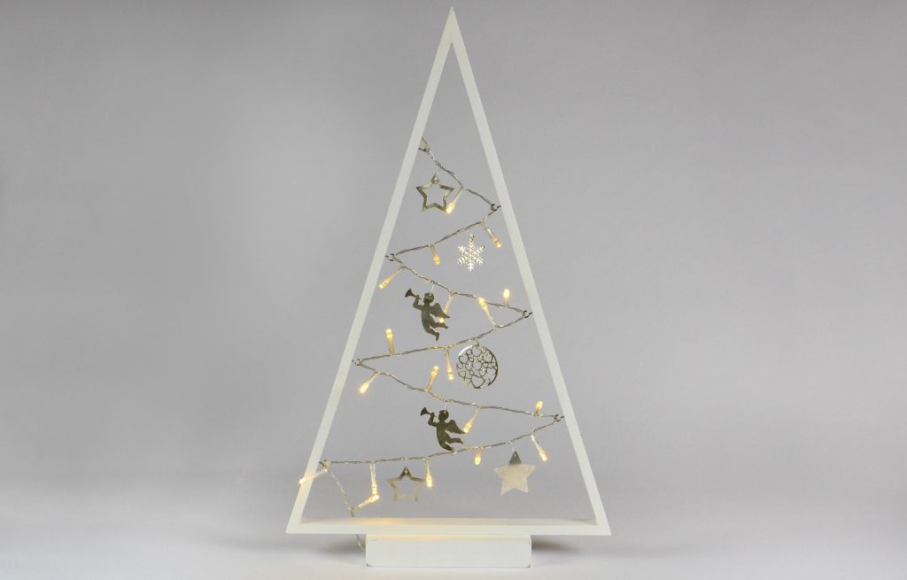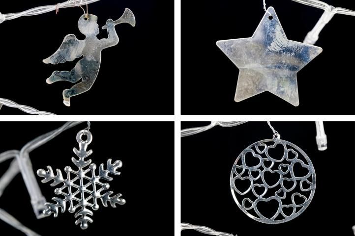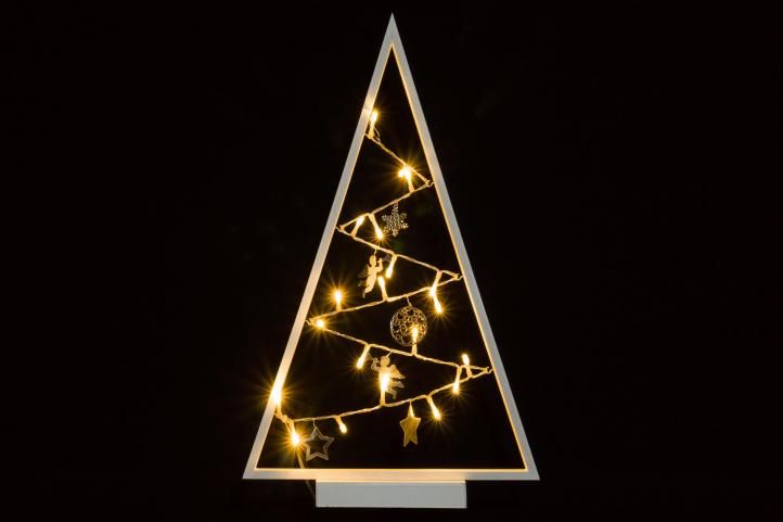 Decorații de Crăciun frumoase, fin lucrate pentru casa ta. Puteți amplasa suportul triunghiular cu un motiv de Crăciun pe o fereastră, pe un raft, pe o comodă sau pe bradul de Crăciun - datorită bateriei, imaginația dumneavoastră nu are limite.
