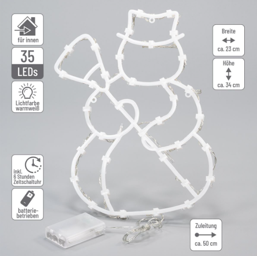 Decorațiunile elegante pentru ferestre subliniază minunat atmosfera festivă și romantică a sărbătorilor de Crăciun. Figurinele sunt echipate cu LED-uri albe și pot fi atașate la fereastră cu ajutorul unor ventuze. Datorită tehnologiei LED, puteți economisi până la 90% din energia electrică în comparație cu becurile tradiționale.