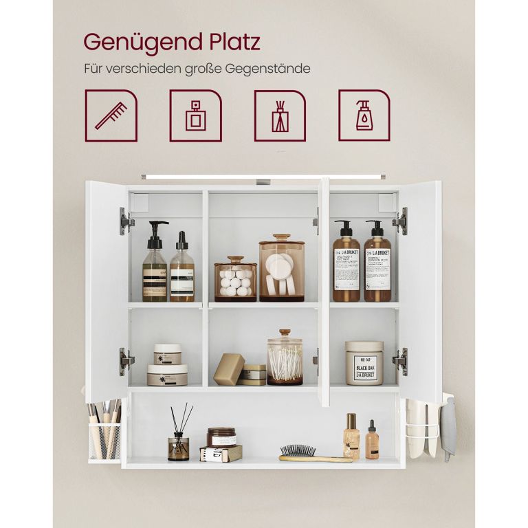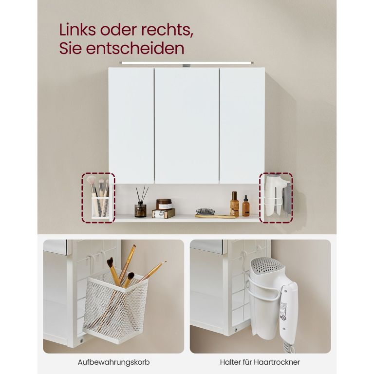 Dulap baie cu oglindă LED, 3 oglinzi, alb, 70x70 cm