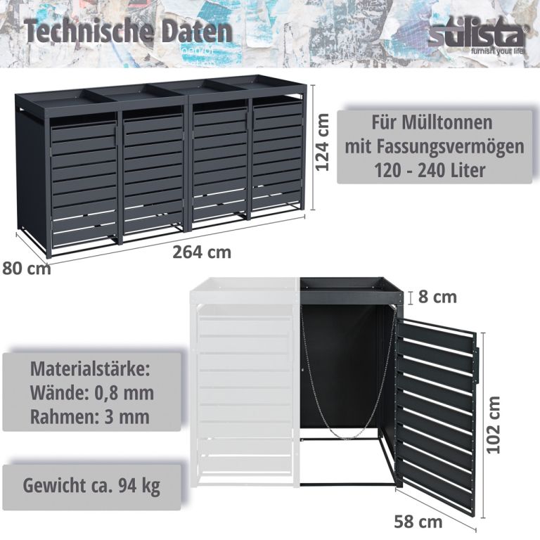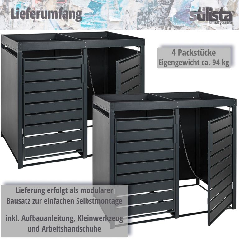 Dulap exterior STILISTA pentru 4 pubele, cu acoperiș pentru