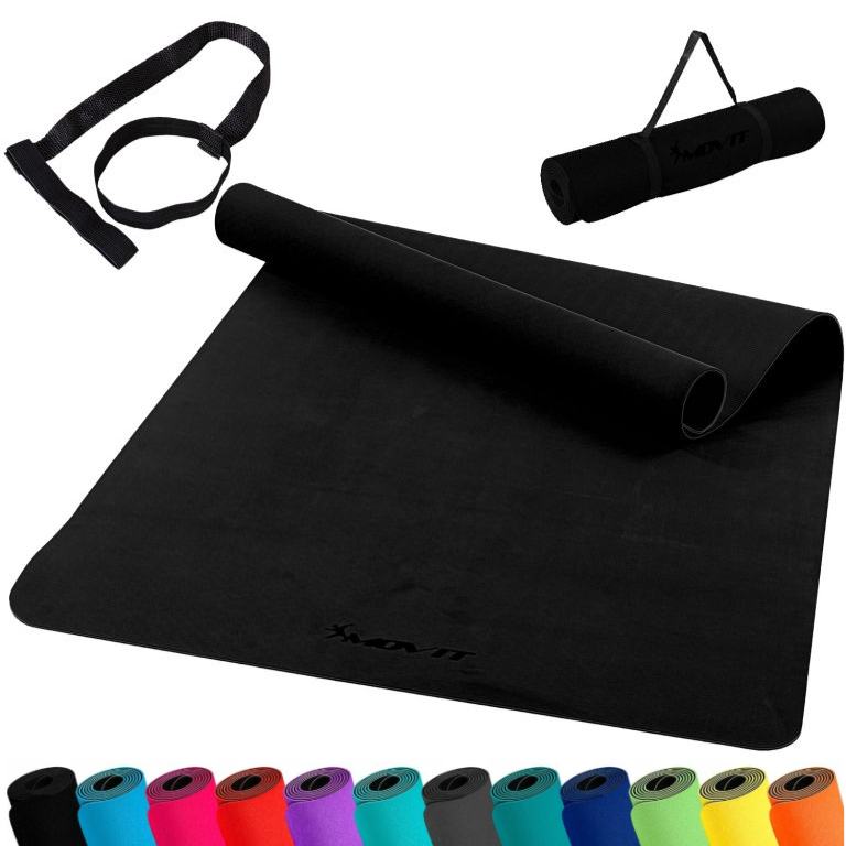 Salteaua antiderapantă mare MOVIT asigură confort și stabilitate în timpul practicării yoga, pilates și exercițiilor de fitness, fiind delicată cu art