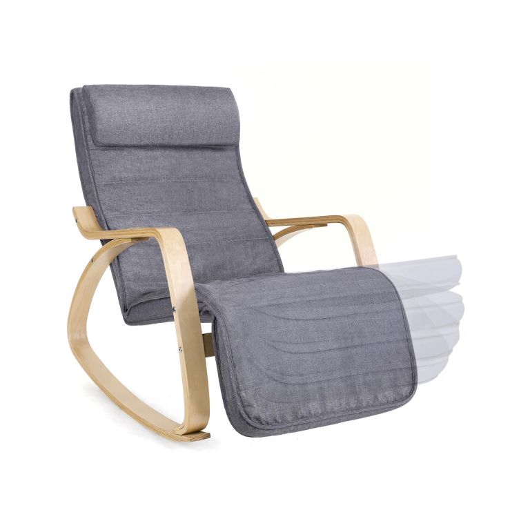 Fotoliu balansoar ergonomic gri, lemn de mesteacăn, 150 kg