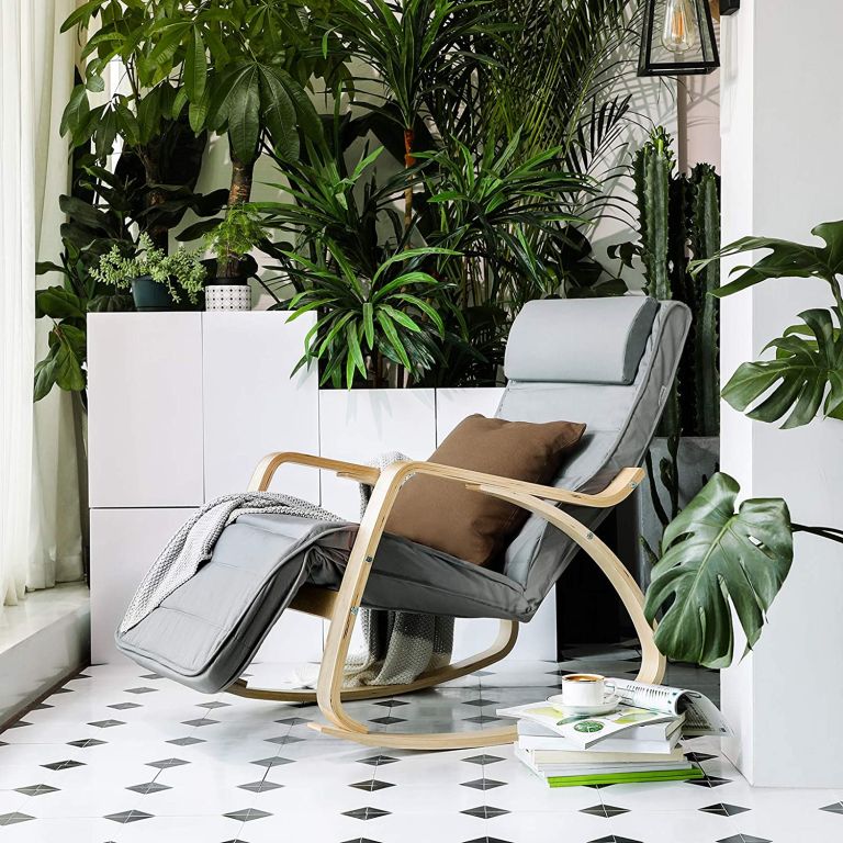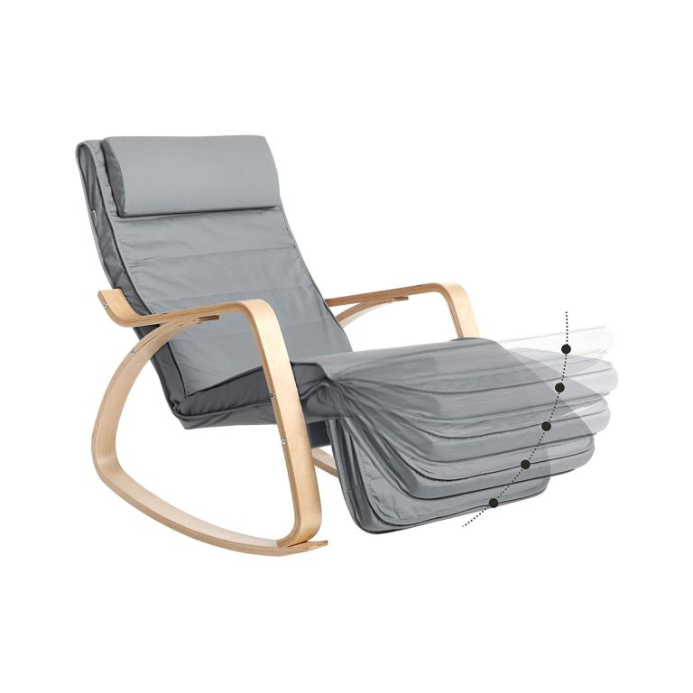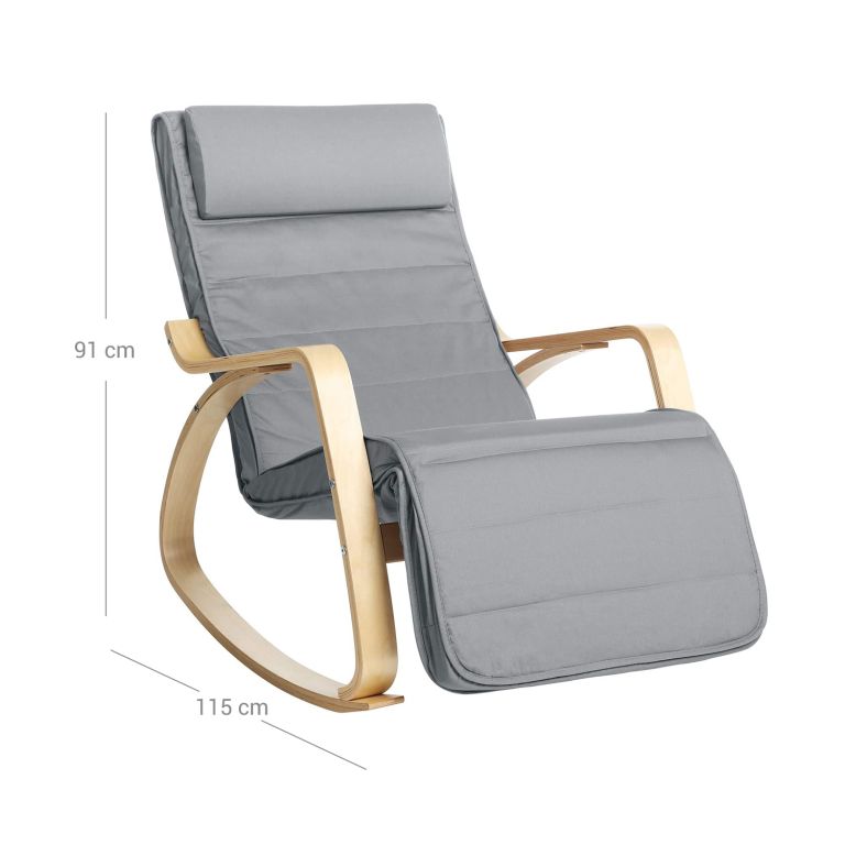 Fotoliu balansoar modern, lemn de mesteacăn, suport picioare reglabil, husă lavabilă.