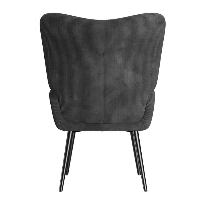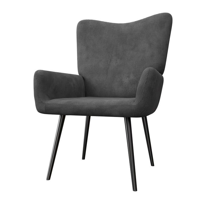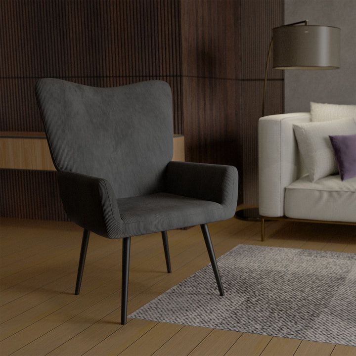 Fotoliu cu spătar înalt, catifea moale și structură metalică rezistentă.