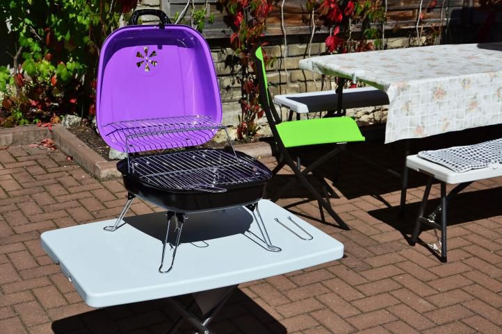 Datorită acestui grătar portabil, puteți avea o petrecere oriunde doriți.