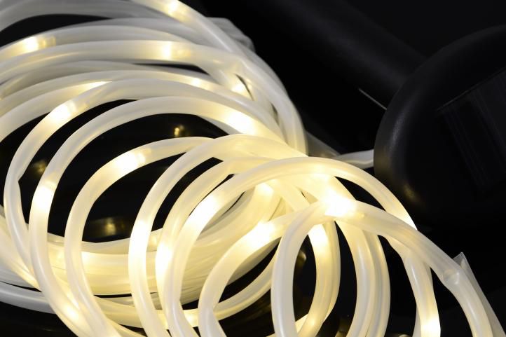 Iluminarea solară frumoasă este potrivită pentru iluminarea zonelor exterioare, cum ar fi un arbust în grădină sau balustrade pe balcon. Datorită sursei de energie solară, nu trebuie să vă faceți griji cu privire la conectarea la o priză electrică. Panoul solar încarcă bateriile în timpul zilei și, de îndată ce se întunecă, luminile se aprind. De asemenea, iluminatul poate fi pornit și oprit manual.
