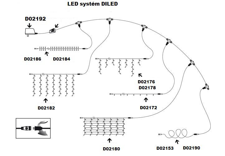 Sistemul diLED de iluminat de Crăciun este unic, datorită posibilităților nesfârșite de conectare și extindere a lanțurilor. Puteți alege din întregul meniu și puteți conecta lanțurile între ele și, datorită controlerului, puteți adăuga și funcții de iluminare. Sistemul diLED este deja aproape de calitate de iluminatul profesional. Durata medie de viață a becurilor cu LED este de aproximativ 50.000 de ore de iluminare.