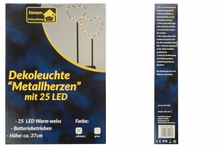 Karácsonyi dísz - 25 LED - fekete szív