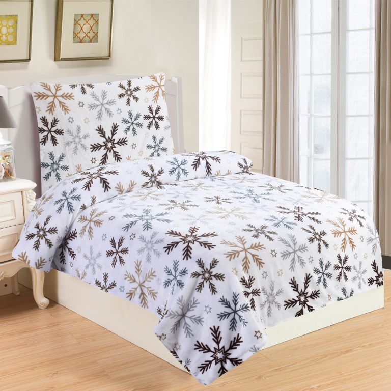 Lenjerie de pat micro plușată - fulgi maro, 140x200 cm