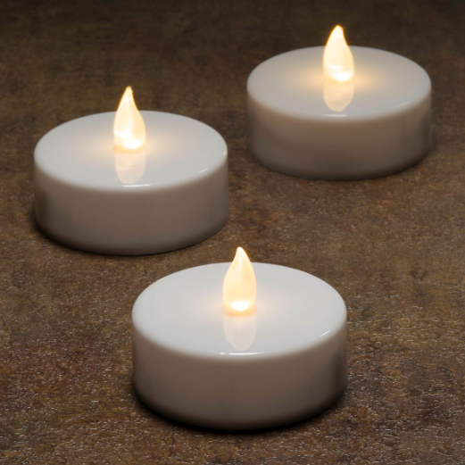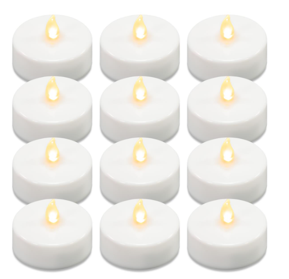 Set 12 lumânări LED tip ceai, timer 6h, sigure, lumină alb cald, pentru decor.