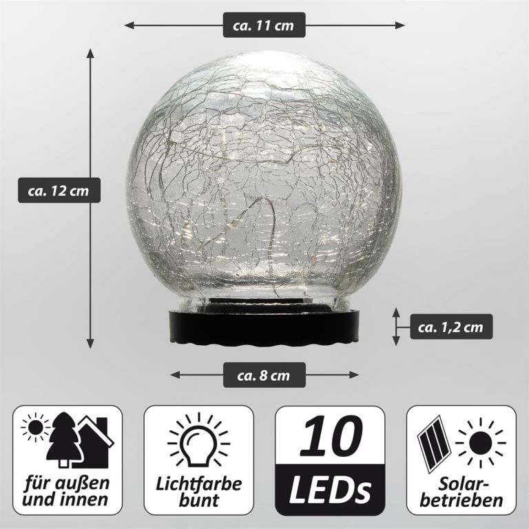 Lumina solară forma de glob de sticlă 10 LED-uri, multicolor
